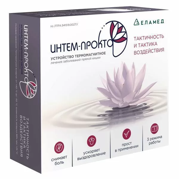 Интем-прокто (бывший УТМпк-01 «ПАРА» Н) – медицинское устройство для лечения геморроя вне обострения, анальных трещин и реабилитации после проведения проктологических операций (иссечении анальных трещин, свищей прямой кишки, геморроя).