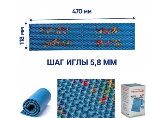 - Коврик Ляпко квадро плюс обладает всеми свойствами обычных плоских аппликаторов Ляпко и состоит из того же материала.