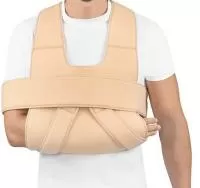 - Оказывает поддержку руки с фиксацией к туловищу.