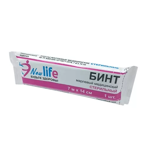- Бинт марлевый медицинский стерильный 7 м х 14 см - предназначен для фиксации, наложения, изготовления операционно-перевязочных средств.
