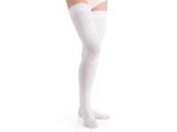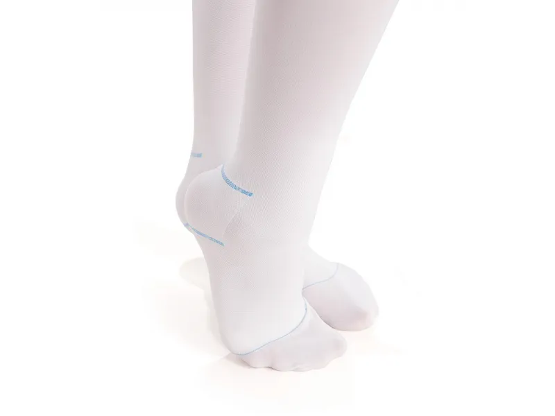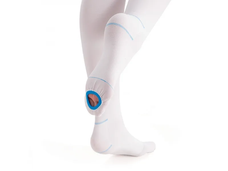 Широкая силиконовая резинка в области верхней трети бедра не оказывает чрезмерного давления на подлежащие ткани, а отверстие расположенное под дистальным отделом стопы способствует эффективному воздухо- и влагообмену. Антиэмболический трикотаж применяется по рекомендации лечащего врача и не рассчитан на длительную ходьбу, основная задача – нормализация венозного кровотока у пациентов с предписанным постельным режимом.