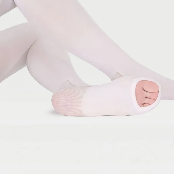 - Подтянуть за пяточную часть изделия, совместить её с пяткой ноги, зафиксировать в таком положении.