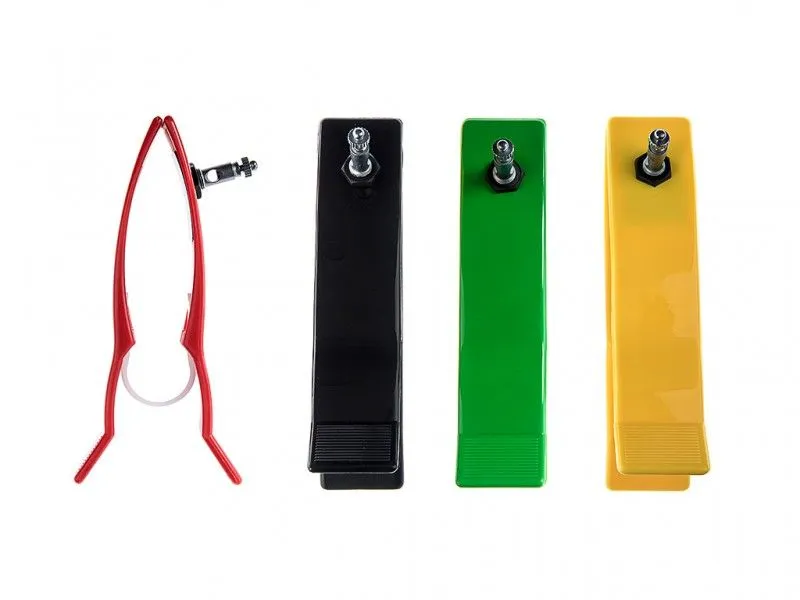 Клеммы электродов изготовлены из сплава серебро-хлорид серебра и обладают универсальным зажимом. Конечностные электроды различаются цветными скобами-захватами (красные, желтые, зеленые, черные), при помощи которых они крепятся на конечности пациента.