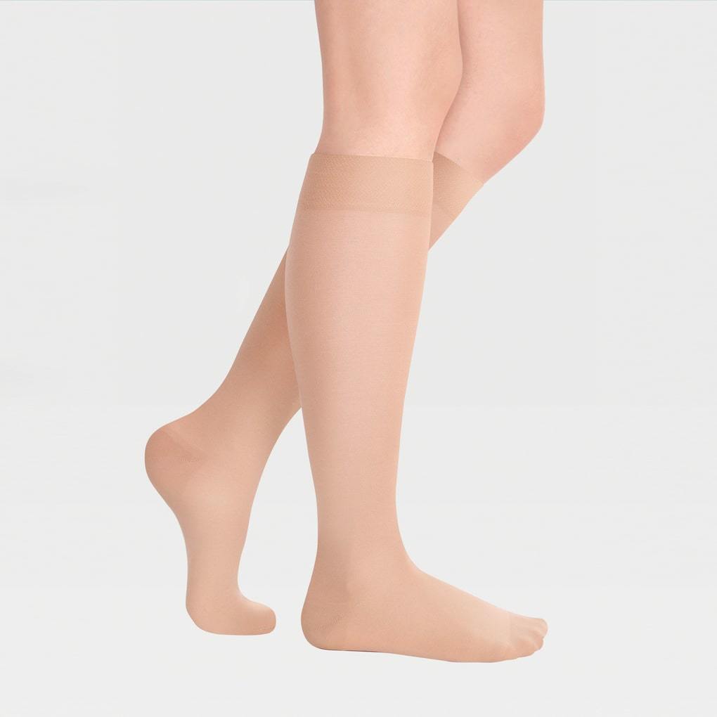 - Возьмите верх изделия рукой и, выворачивая, стяните вниз до колена, затем до лодыжки и до носка.