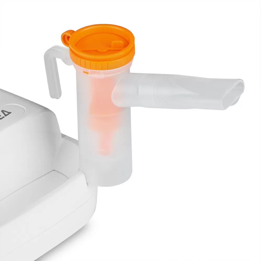 - Специальное крепление для мундштука на корпусе обеспечивает высокий уровень гигиены в процессе ингаляции.