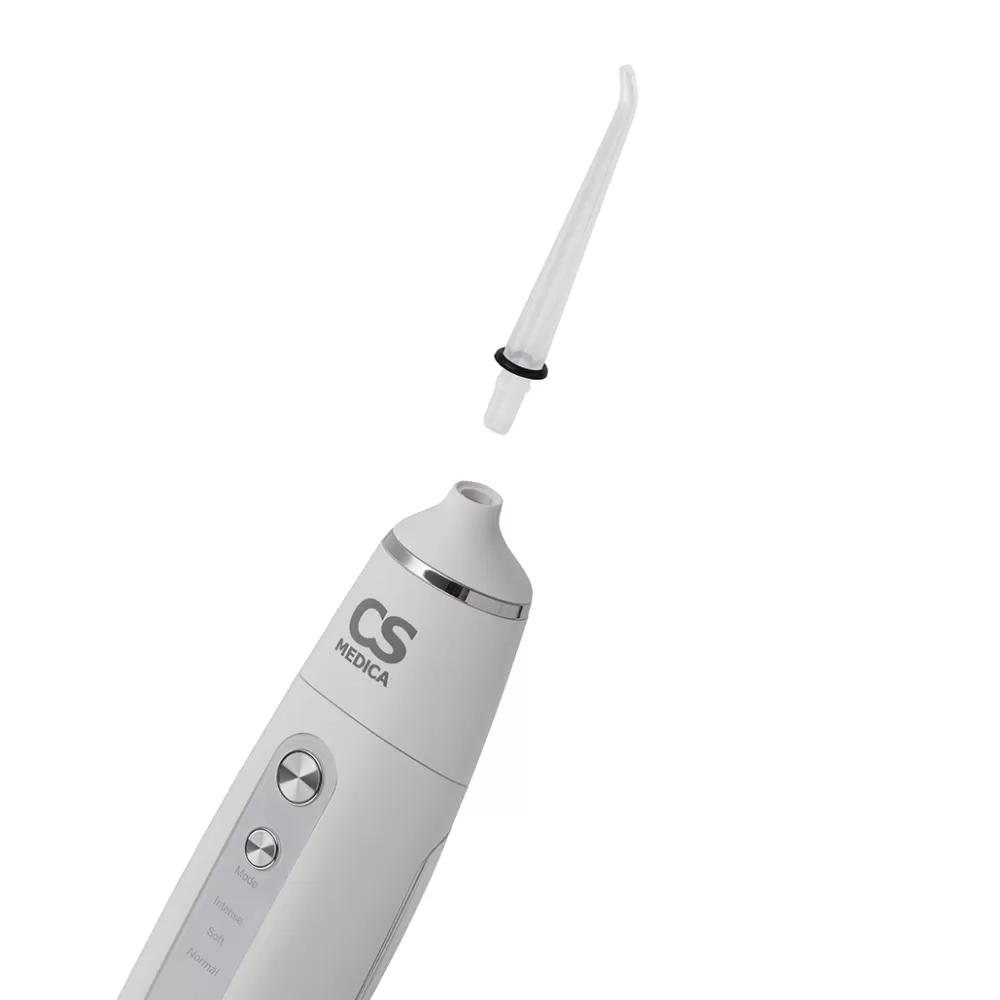 Стильный портативный ирригатор CS Medica AquaPulsar CS-3 PRO+ можно использовать не только в домашних условиях, но и в поездках и путешествиях. Благодаря трем режимам работы с двумя уровнями интенсивности, пользователи подберут комфортное давление струи воды – от 200 до 790 кПа.Для проведения полноценной гигиены ротовой полости в комплект поставки входят 5 сменных насадок: стандартные (3 шт.), ортодонтальная для брекетов (1 шт.), пародонтальная с мягким наконечником для чувствительных десен (1 шт.). Угол наклона насадок составляет 135 градусов для лучшей очистки труднодоступных участков полости рта.