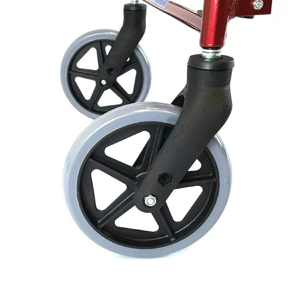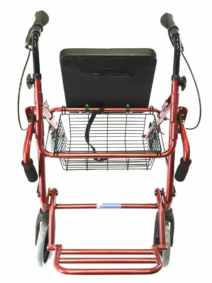 Каталка имеет алюминиевый каркас с пластмассовыми рукоятками, снабженными ручными двухпозиционными тормозами - при нажиме на ручки тормозов вверх происходит подтормаживание при движении, при переводе ручек тормозов в нижнем положении колеса полностью фиксируются, обеспечивая стояночное торможение каталки. Каталка комплектуется съемной корзинкой, откидывающимся сиденьем и подножкой. Каталка складывается в вертикальной плоскости.