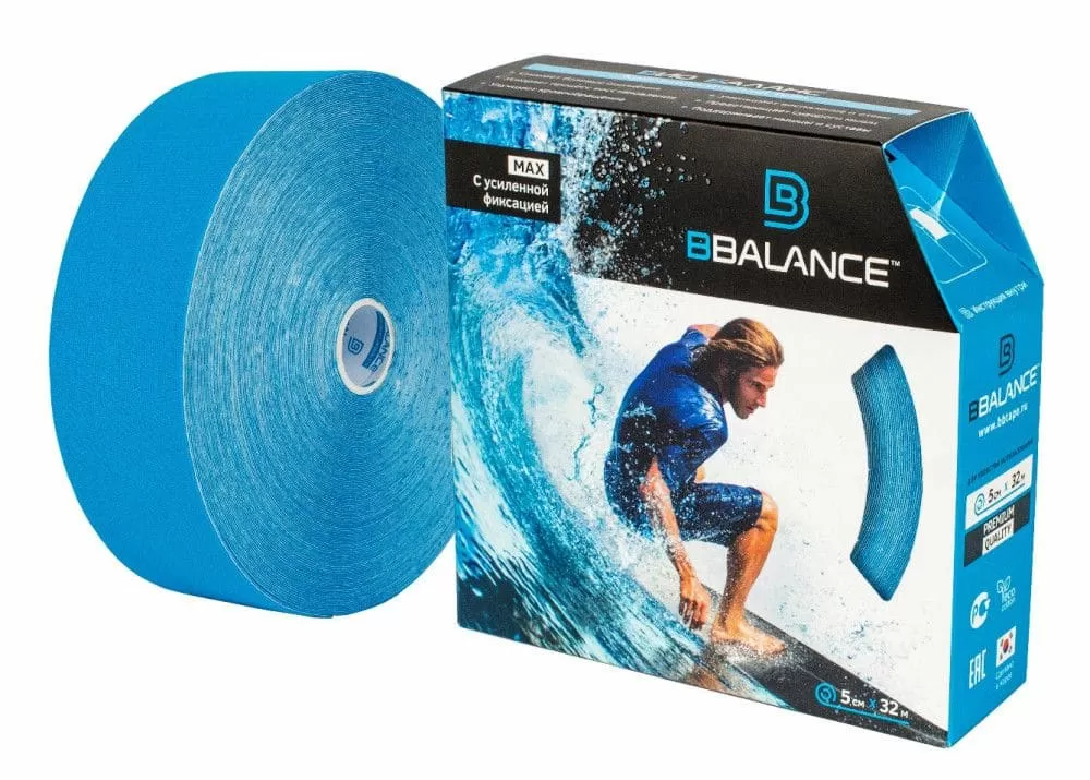 - Кинезио тейпы с усиленным клеем BBalance Tape (BBTape) серии MAX подойдут для тейпирования участков тела, постоянно находящихся в движении или подверженным дополнительному трению (колени, локтевые суставы, лодыжки и т.д.), а также для тех людей, кто занимается водными видами спорта и много времени проводит в воде.