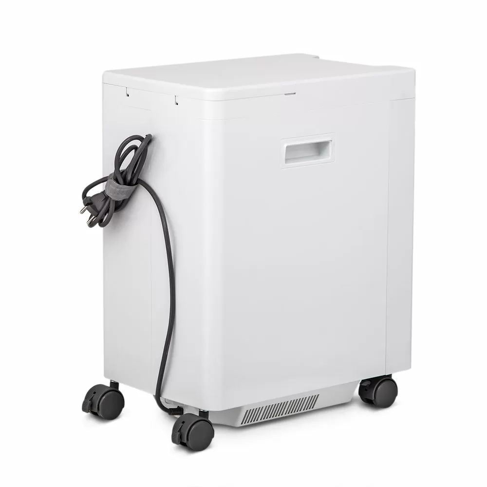- Корпус концентратора кислорода выполнен из надежного ударопрочного пластика и снабжен удобными боковыми ручками, а также колесными опорами для легкого перемещения по дому.