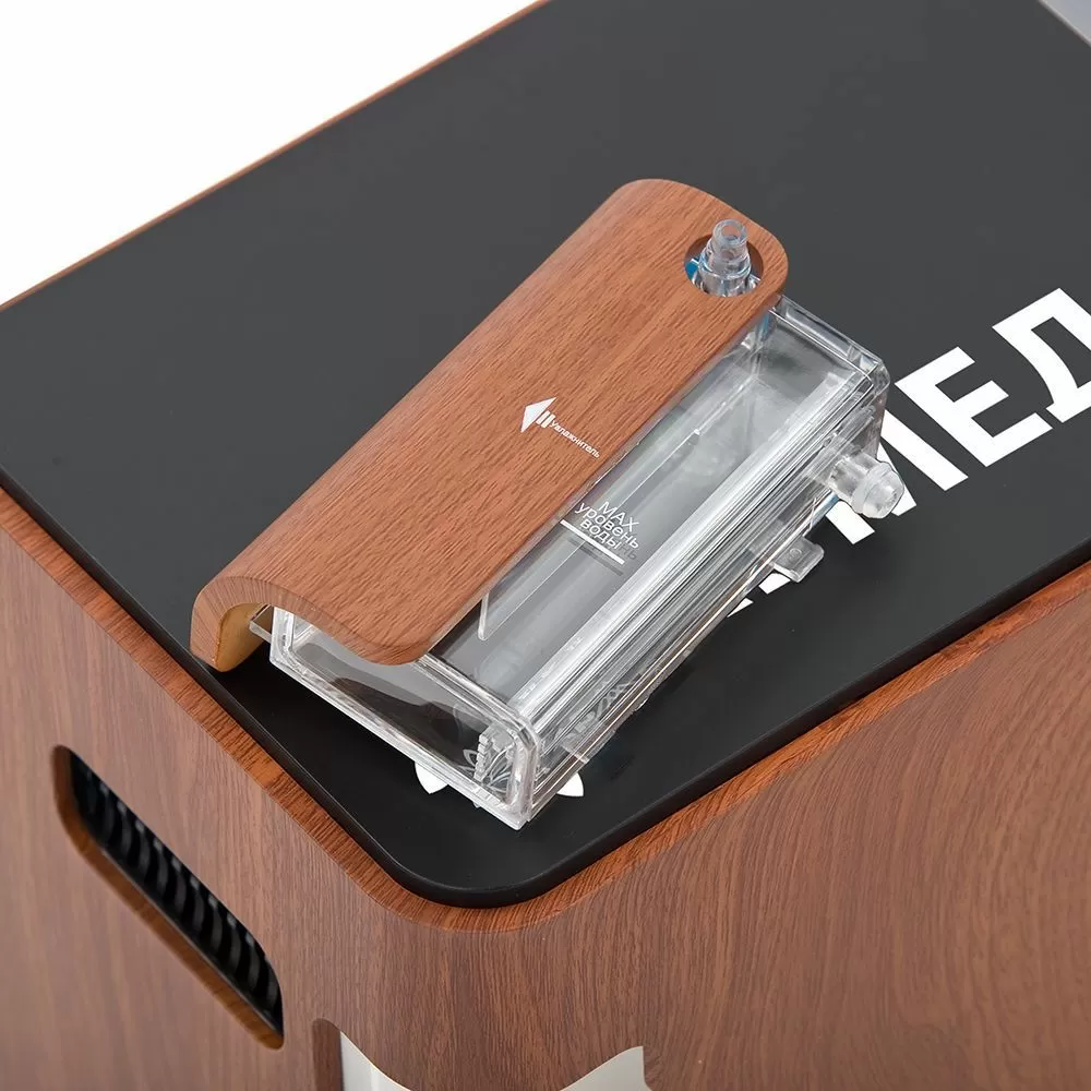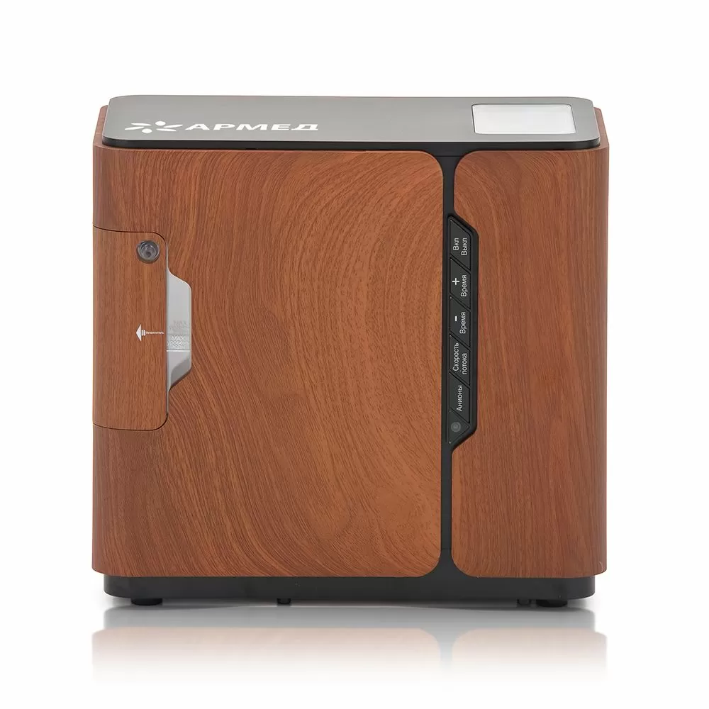 - Концентратор оформлен в приятном дизайне с имитацией бука: он сделает любой интерьер уютней, а его строгие формы прекрасно впишутся в любой уголок комнаты. Компактные размеры и привлекательный дизайн сделают кислородный концентратор стильной деталью любого интерьера.