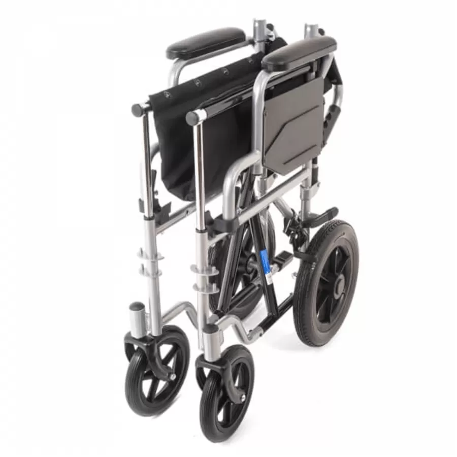 Складная конструкция рамы и спинки экономят пространство во время хранения и транспортировки. Форма подлокотников позволяет подъехать к столу, а возможность снимания без инструментов облегчает процесс пересаживания.
