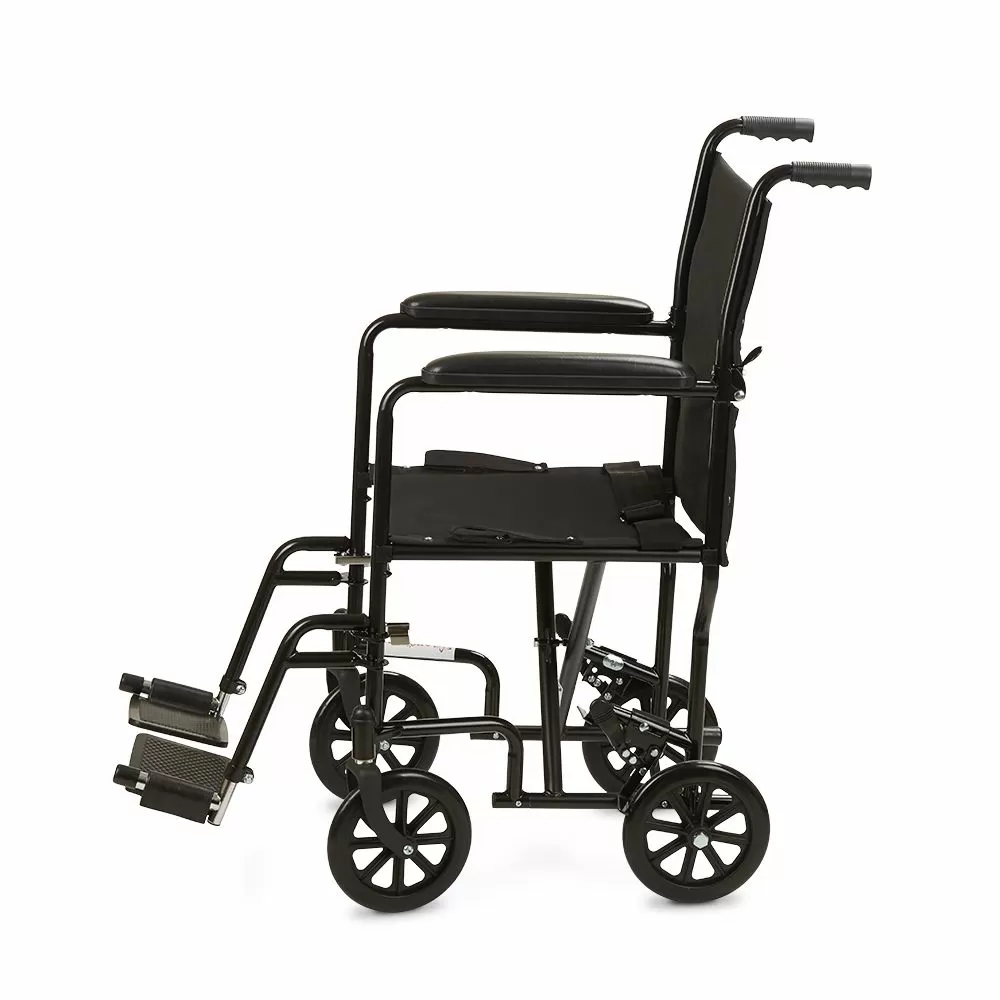 - Поскольку подножки можно откинуть наверх, пересаживаться пользователю значительно легче. Для перевозки при сложении кресла подножки снимаются.