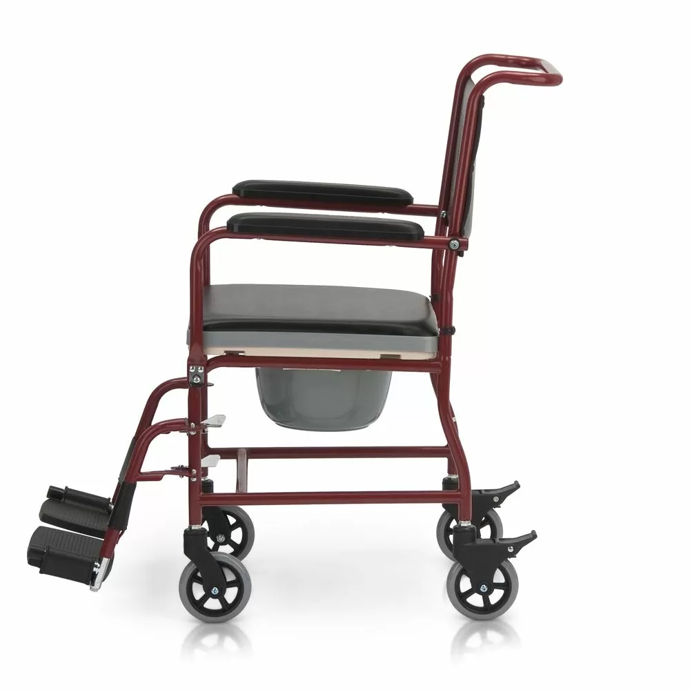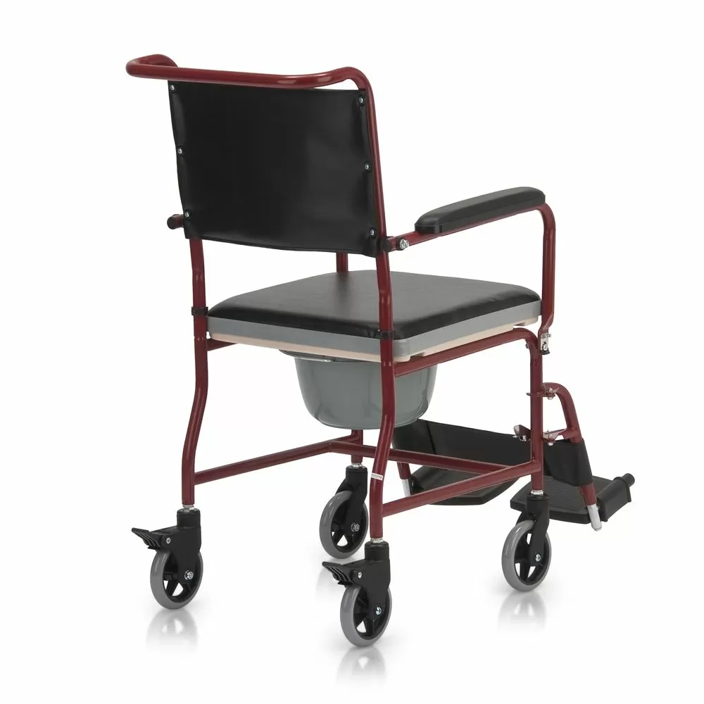 Удобное сиденье и спинка из кожзама, легко устанавливать над унитазом; Откидные подлокотники |