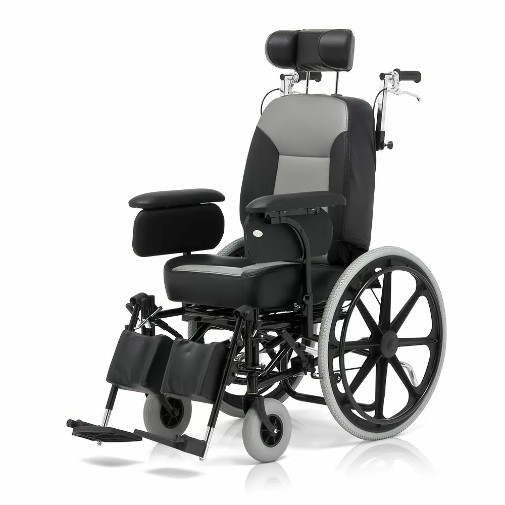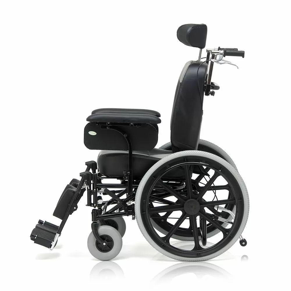 Выдерживает вес до 125 кг. Удобное кресло автомобильного типа. Задние колеса быстросъемные. На рукоятках ручные тормоза для сопровождающего |