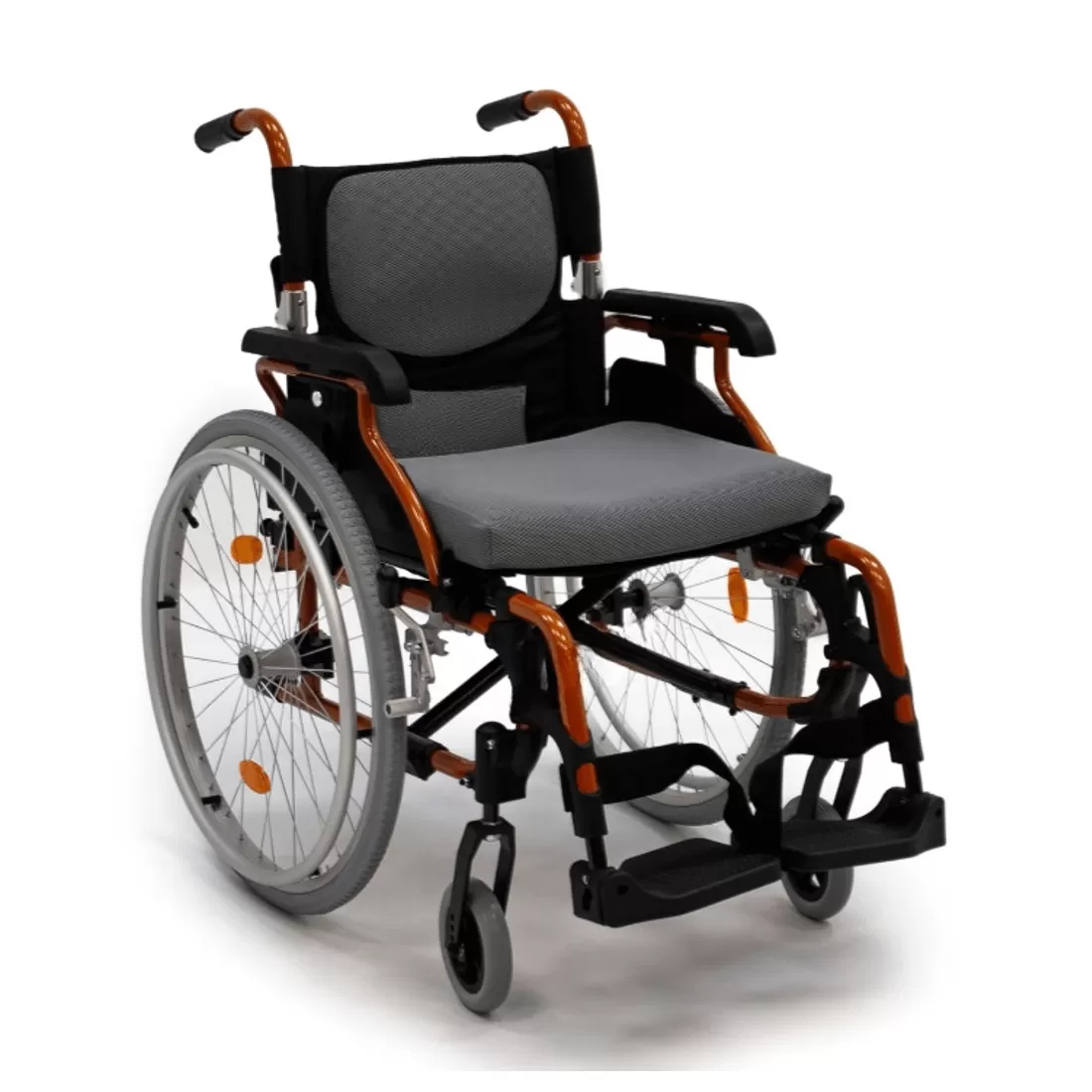 - Алюминиевая рама складывающаяся "сторона к стороне" посредством складного х-образного механизма, обладает минимальным для повседневного кресла-коляски весом
