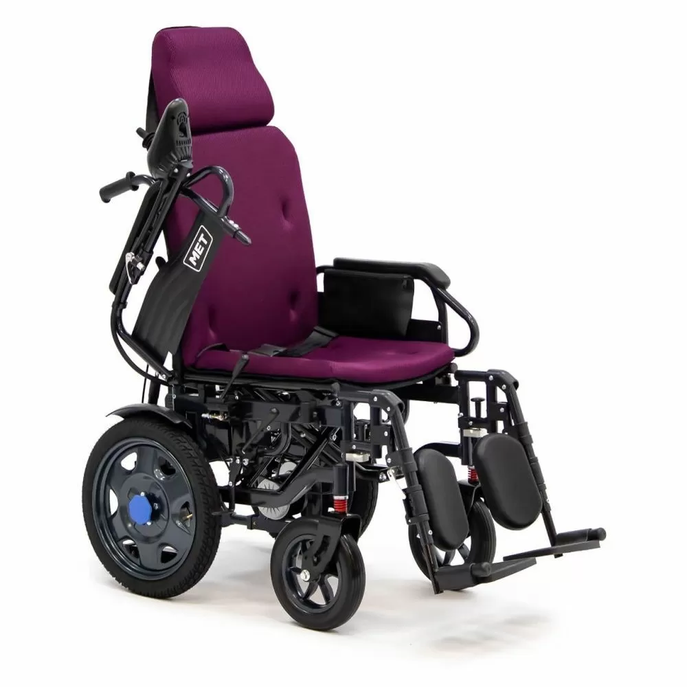 Коляска MET COMFORT 110 имеет механизм, который защищает кресло от опрокидывания и обеспечивает максимальную безопасность пользователю. Спинку кресла можно откинуть назад для большего комфорта, также можно поднять подножки, чтобы принять горизонтальное положение. Контроллер можно разместить как слева, так и справа от пользователя. На нём есть кнопки для подачи звукового сигнала, переключения скоростей, а также функции SOS и отключения звука. Управление движением осуществляется с помощью джойстика.Проходимость и ходовые качества