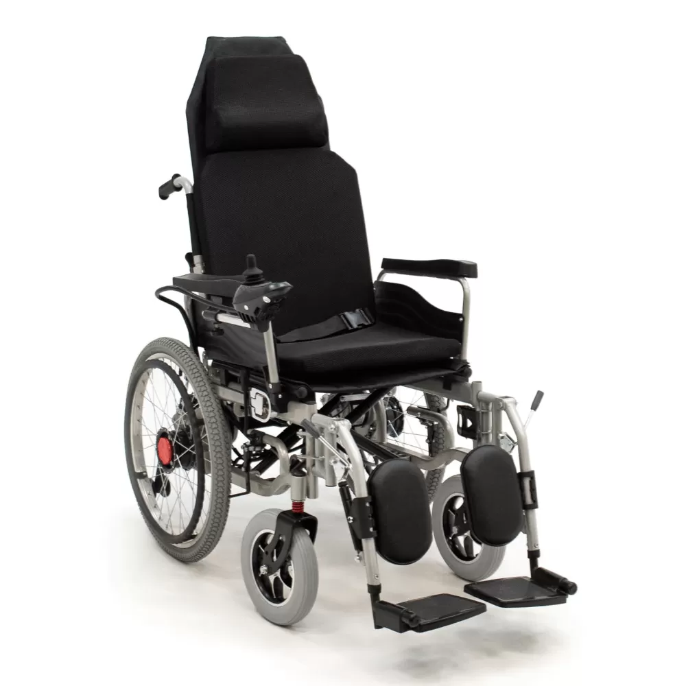 Кресло-коляска электрическая оборудована задним приводом, реализованным в виде двух независимых электромоторов на безугловом редукторном соединении с ведущими колёсами. Такой тип электропривода наиболее надёжен и прост в обслуживании, так как достигается максимальная простота механических соединений.
