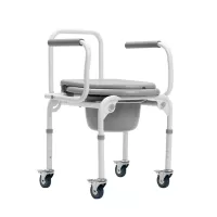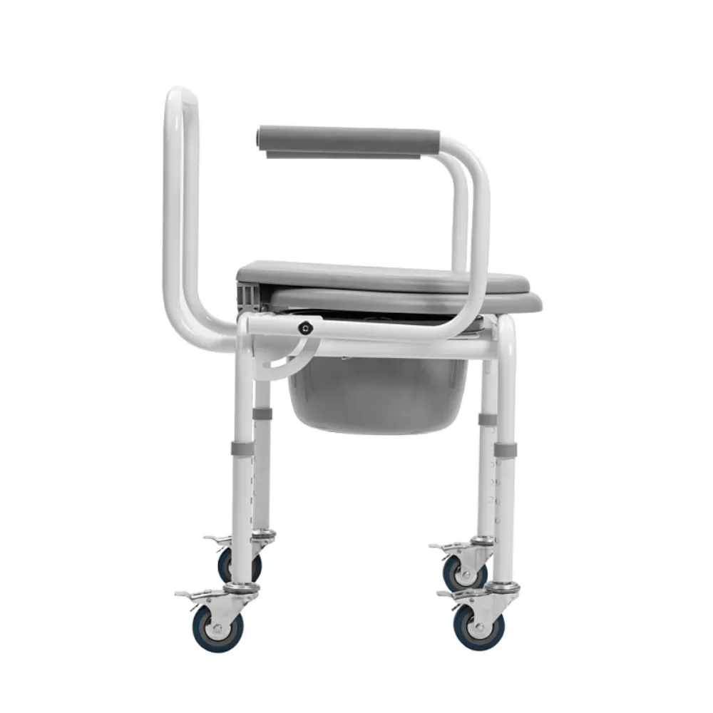 Откидные подлокотники с мягкими накладками и быстросъемная спинка делают удобным пересаживание на стул.