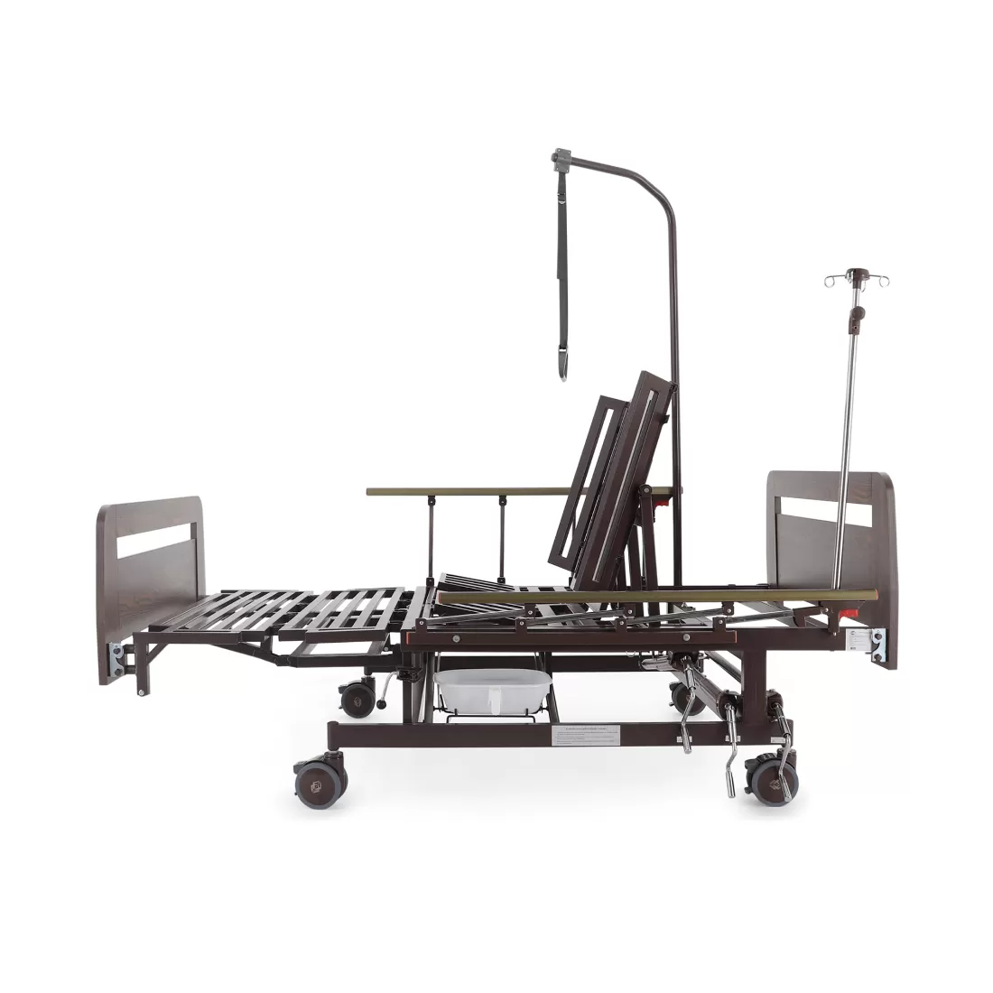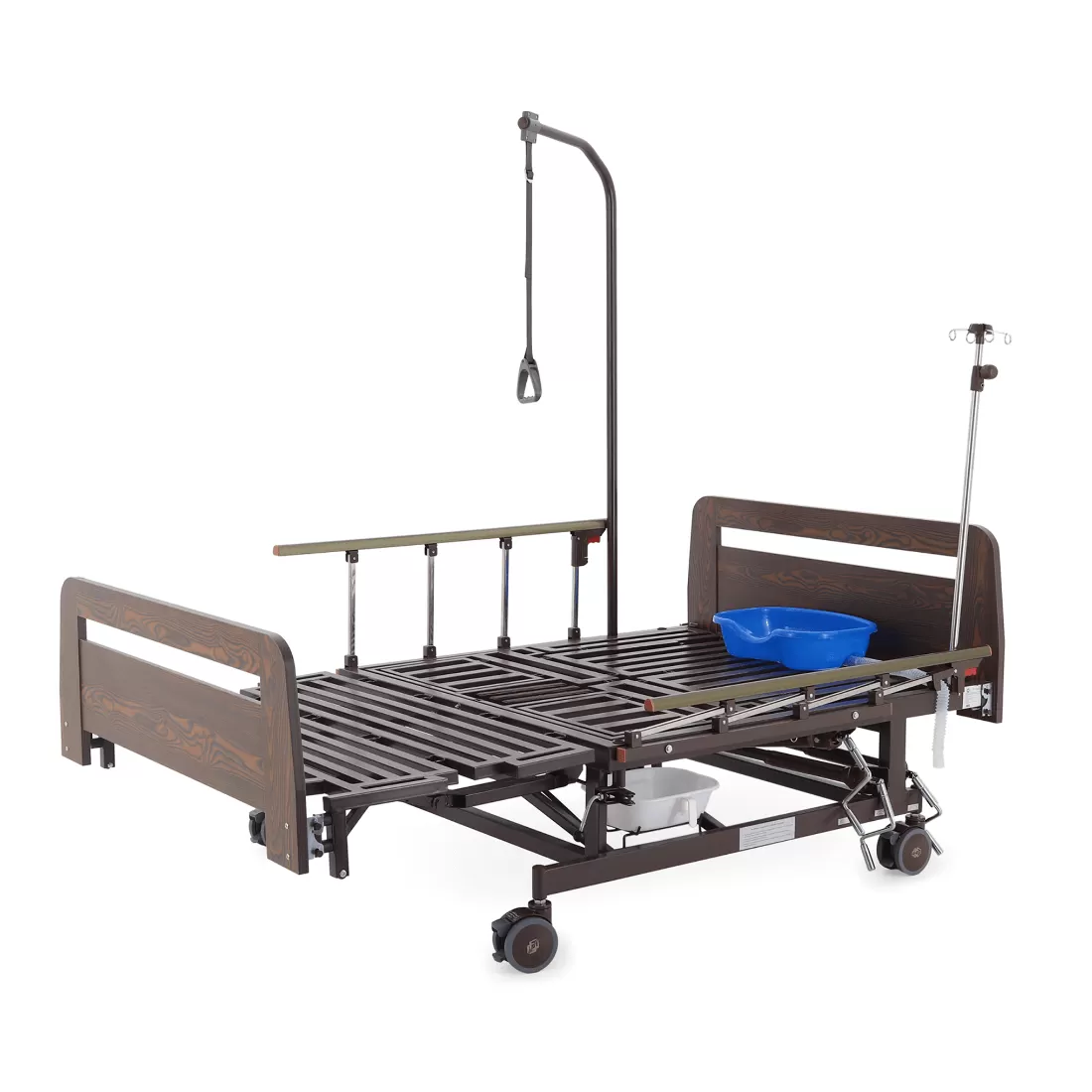 - туалетное устройство — медицинская кровать с туалетом позволяет пациенту избежать лишних движений при справлении естественных надобностей, что очень важно при тяжелых травмах и заболеваниях.