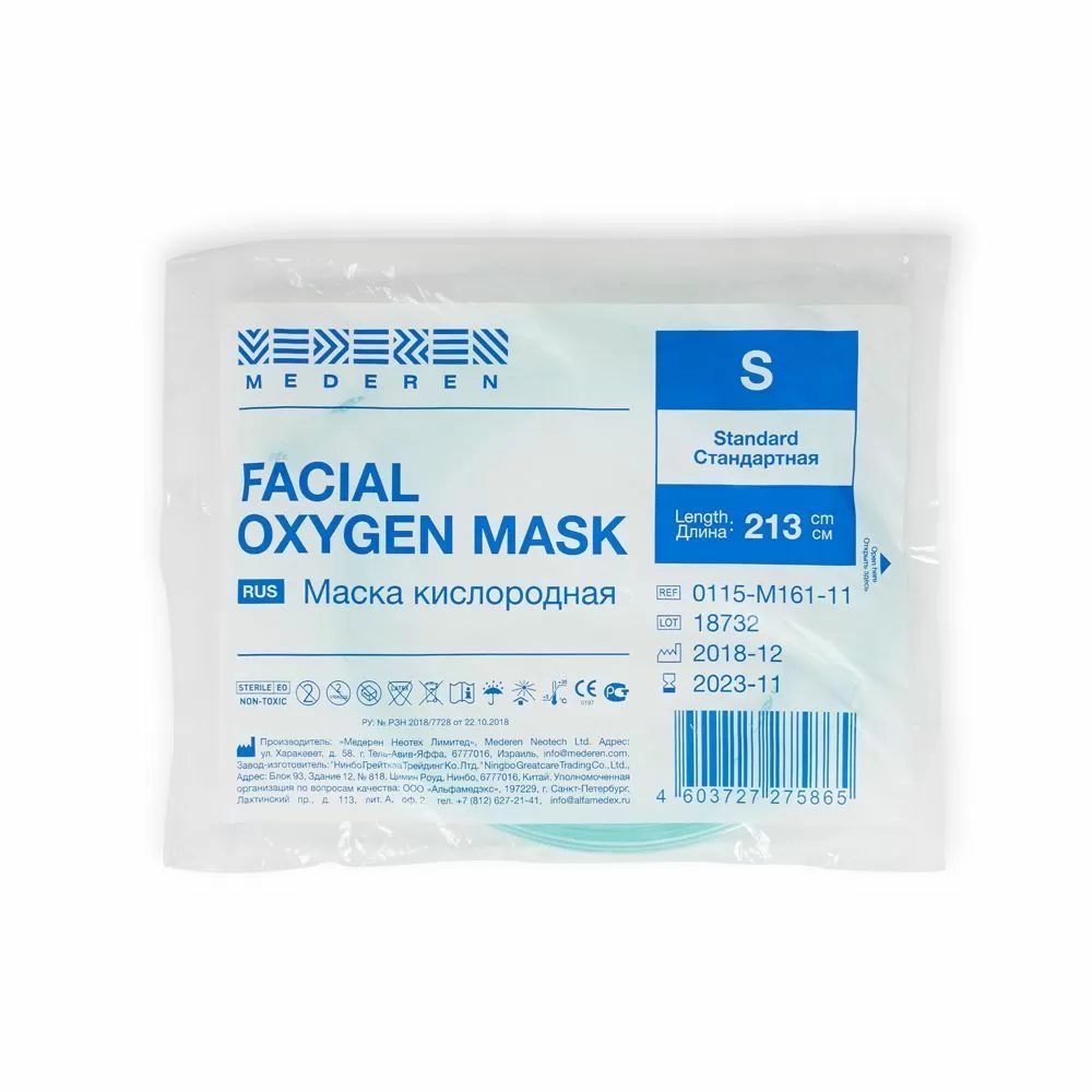 - Кислородная нереверсивная маска стандартного размера для взрослых предназначена для кислородотерапии.