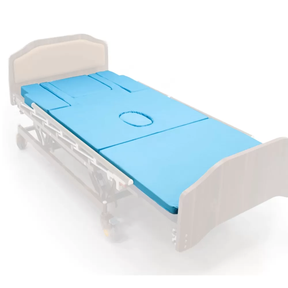 Четырёхсекционный медицинский матрас из ППУ в раздельных чехлах на молнии для функциональных кроватей МЕТ REVEL, МЕТ REMEKS, с функцией переворачивания и санитарным оснащением.