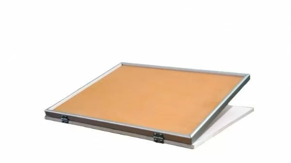 Аппарат устроен очень просто: он состоит из двух рамок, соединенных петлей. В верхнюю рамку вставлена эластичная пленка, а внутри нижней закреплен лист фанеры, обитой тканью. Между рамками закладывается лист бумаги, а на ткань нижнего листа наносится штемпельная краска.