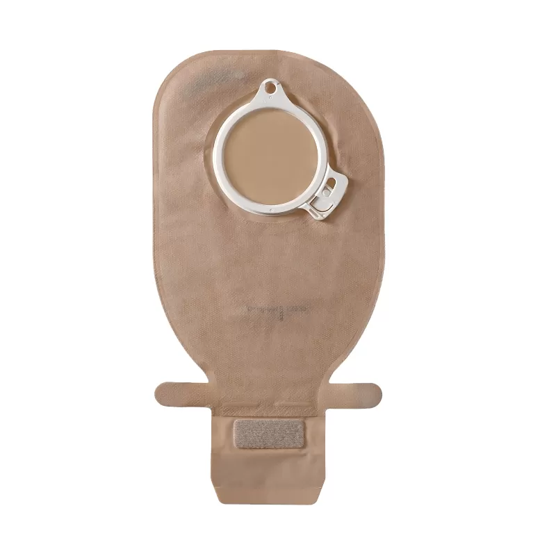 - Стомный мешок крепится на фланце клеевой пластины с помощью кольца-защелки. Щелчок подтверждает надежность крепления мешка на пластине.