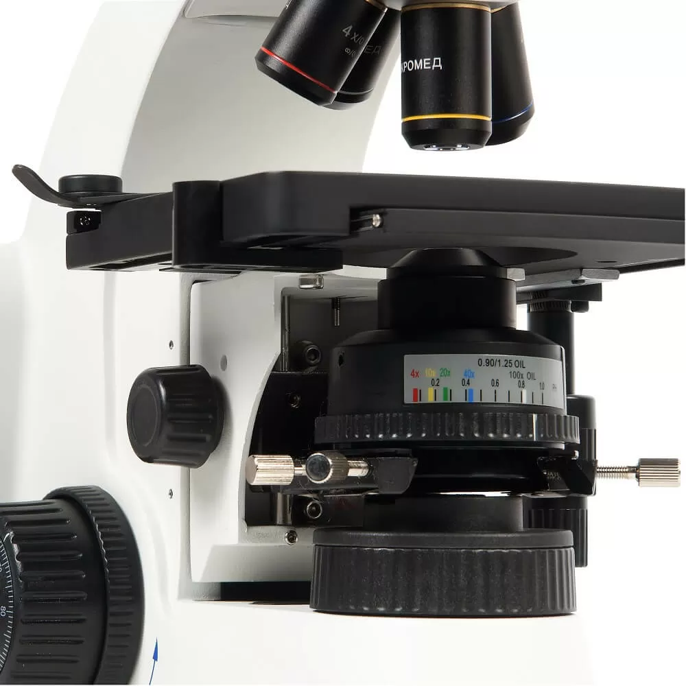 - В комплекте микроскопа объективы с коррекцией на бесконечность 4x/0.13, 10x/0.30, 40x/0.70 и иммерсионный объектив 100x/1.25 oil. По дополнительному заказу могут быть приобретены объективы 20x/0.45 и 60х/0.80. Высокое оптическое качество объективов обеспечивает информативность и комфорт при исследованиях и отличное качество записываемых изображений. Объективы стандартизованы по DIN и имеют парфокальную высоту 45 мм.