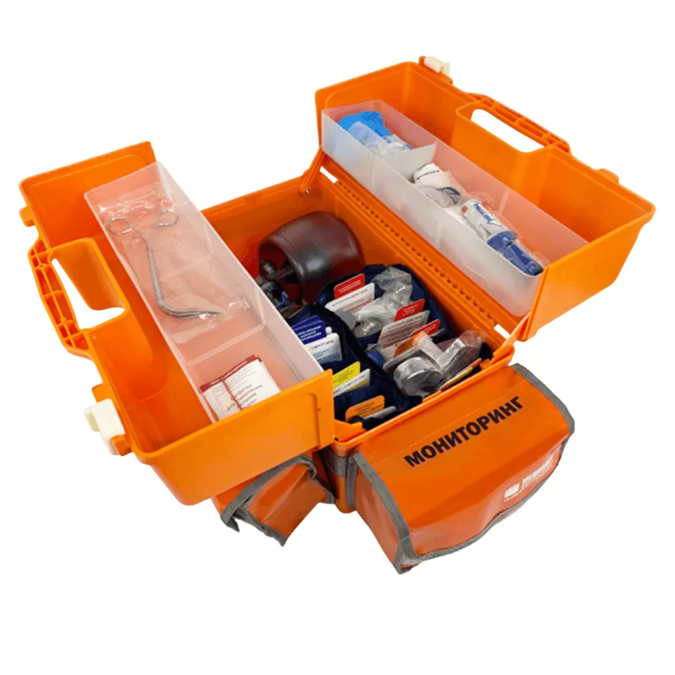 Укладка пластиковая медицинская УПМ-Пм/2 изготовлена из холодо- и теплостойкого пищевого АБС пластика, имеет удобную ручку и замки, исключающие её открытие при транспортировке. Верхняя часть укладки выполнена в виде створок, открывающихся в стороны, в створках установлены лотки для размещения вложений. Створки крепятся ко дну надёжными петлями со стальным стержнем внутри. При открытии укладки обеспечена постоянная вертикальная ориентация лотков и удобный доступ к её содержимому. Укладка полностью оснащена и алгоритмизирована для оказания первой помощи.