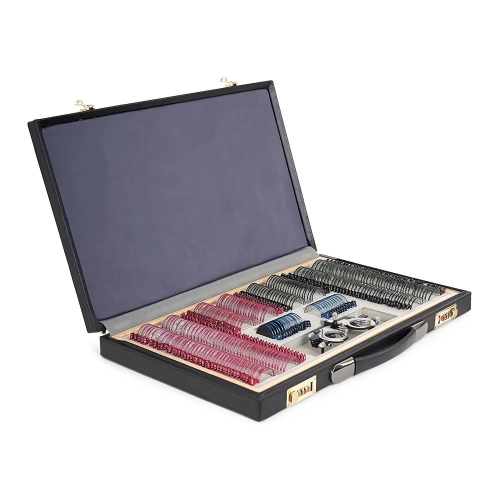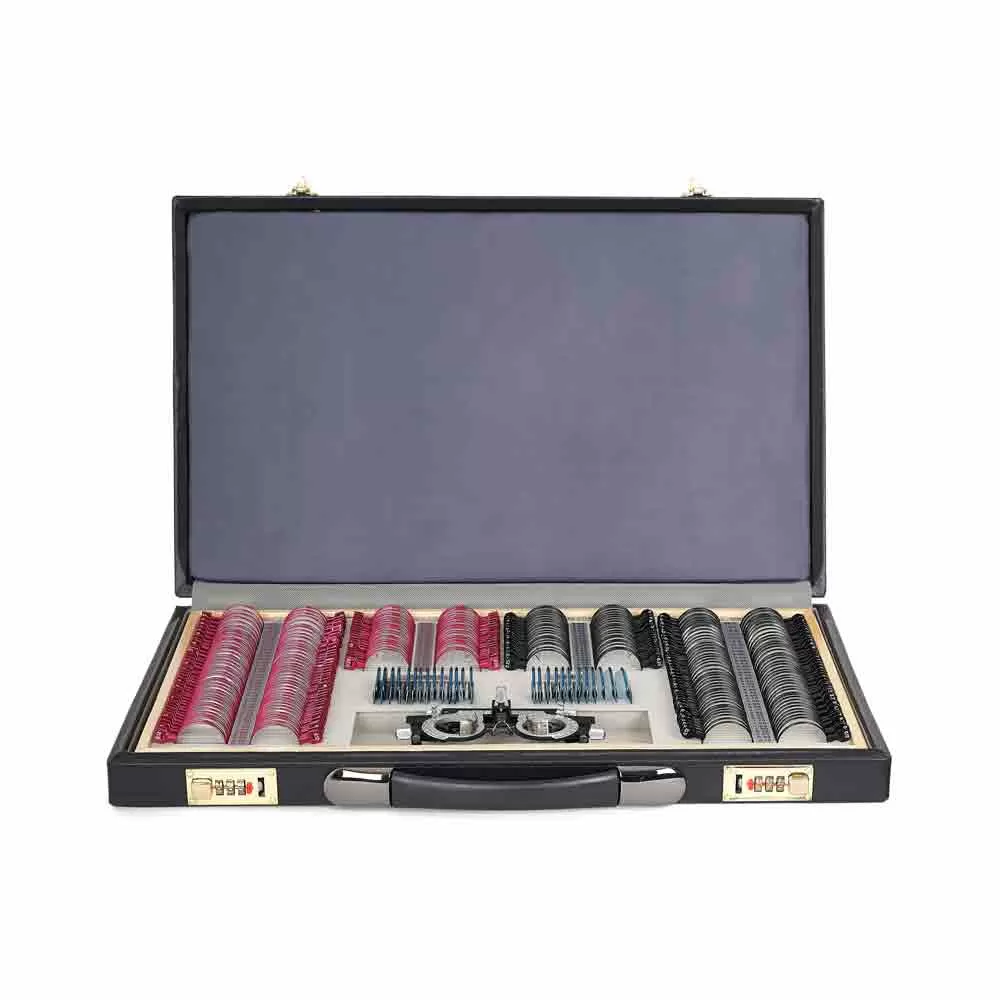- Вспомогательные линзы, предназначенные для различных вспомогательных исследований зрения: точечная и щелевая диафрагмы, матовая пластина, полуматовая пластина, цилиндр Мэддокса, линза с перекрестием, красный и зеленый светофильтры, скрещенные цилиндры, плоскопараллельная пластина.