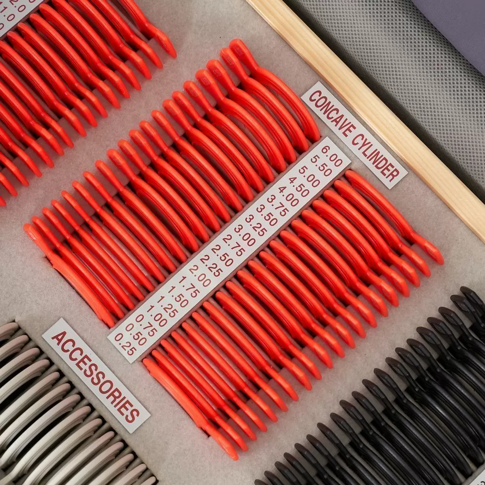 - Парные вогнутые линзы (-) и выпуклые (+) линзы в диапазоне от 0,12 до 6,00 дптр используются для исследования и коррекции астигматизма.
