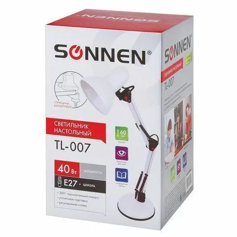 Настольная лампа-светильник SONNEN TL-007 станет стильным аксессуаром в интерьере. Ее конструкция обеспечит поток света под требуемым углом.