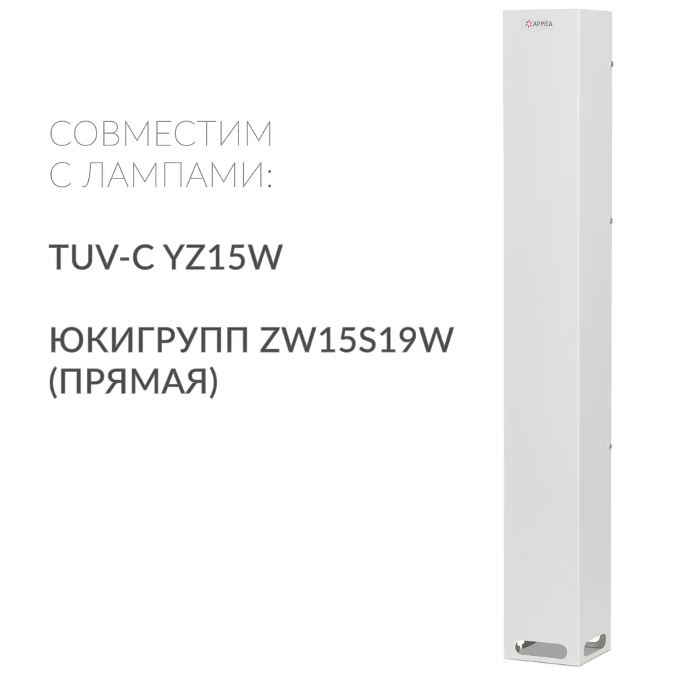 - Рециркулятор имеет компактный и узкий корпус из прочного металла с порошковым покрытием. Он надежно защищает УФ-лампу от ударов и повреждений.