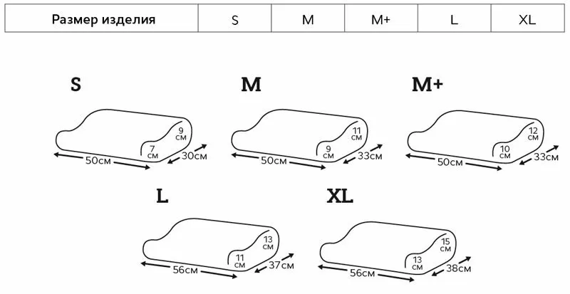 Габариты подушки:- S — 50x30x9/7 см