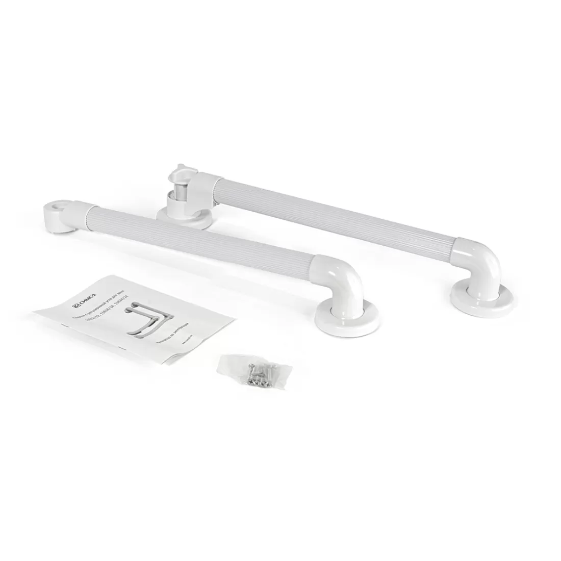 Поручень выполнен из гигиенического ударопрочного пластика. Выдерживает нагрузку до 115 кг. Крепеж идет в комплекте.