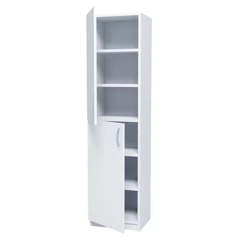 - Шкаф одностворчатый, имеет две двери, два отделения, по две полки в каждом, полки устанавливаются на полкодержателях