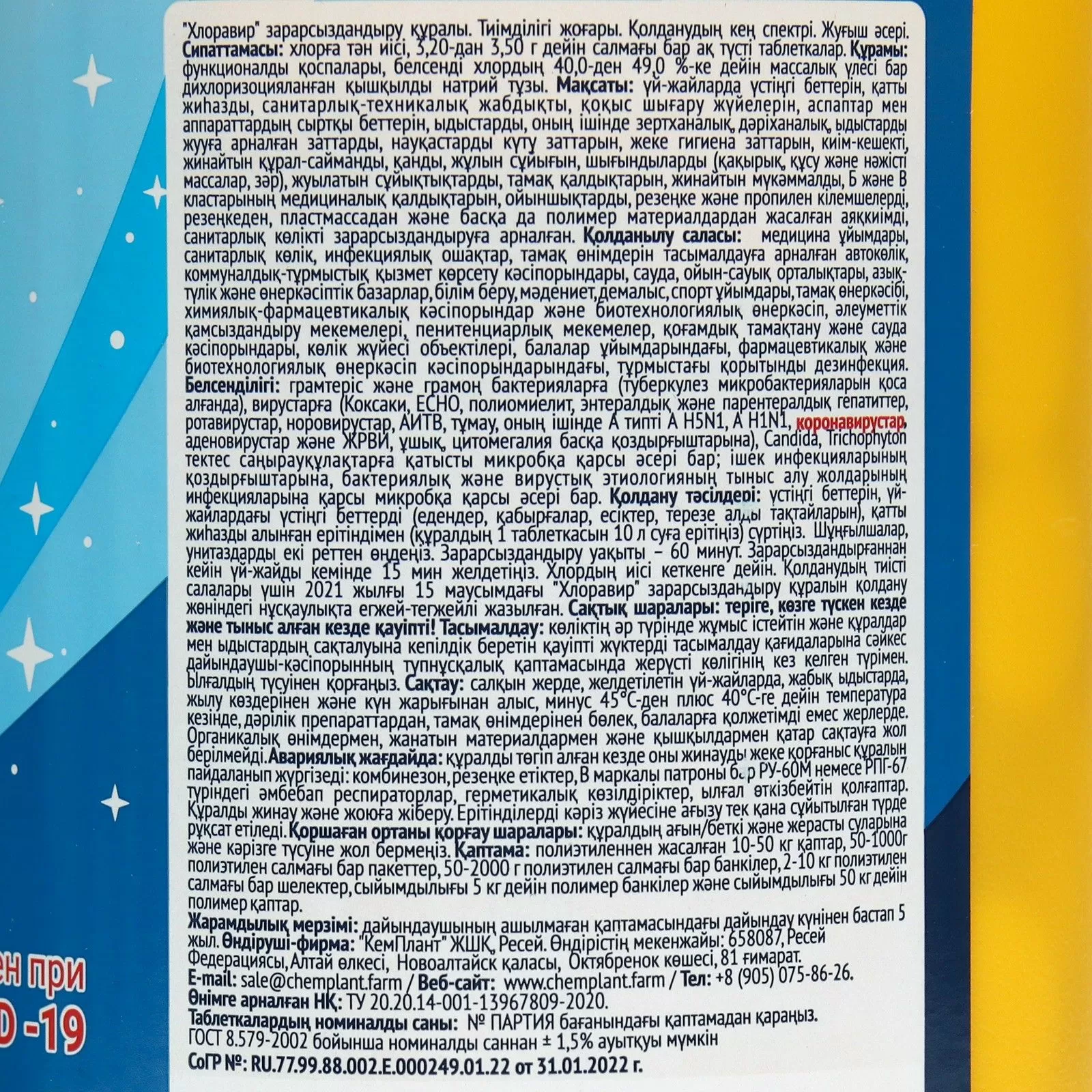- Каждая таблетка "Хлоравир" содержит активное вещество – хлор, известное своим мощным дезинфицирующим действием.