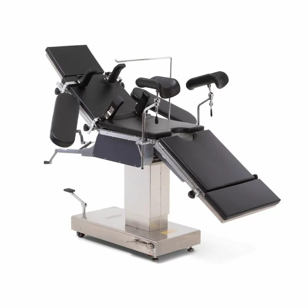 - Стол оснащен регулируемым по высоте поясничным отделом, который поддерживает соответствующий отдел спины пациента во время хирургических манипуляций.