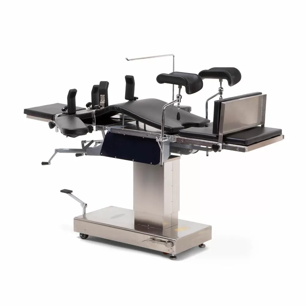 ST-II – функциональный операционный механогидравлический 4-секционный стол с удобной механической регулировкой головной, спинной и голеностопной секций. Съемные опоры для плеч, тела, рук и ног также можно настраивать для обеспечения необходимого положения пациента и надежной его фиксации. ST-II управляется полностью механически и не требует подключения к сетям электропитания.