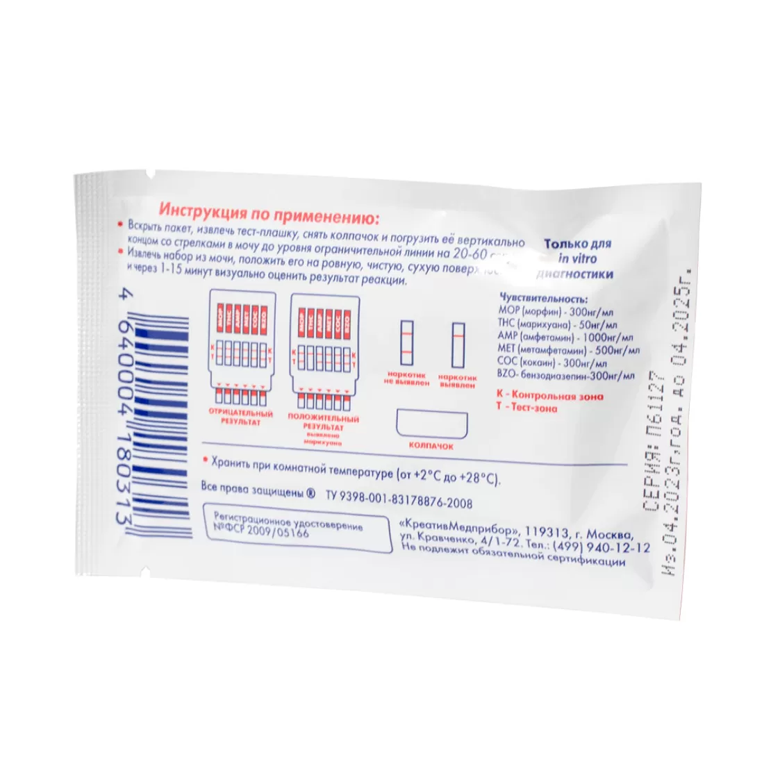 Тесты по моче КреативМП-6 для определения 6 видов наркотиков, 20 шт. Цена за упаковку из 20 штук.Мультипанель погружного типа, применяются для выявления факта употребления нескольких видов наркотиков.