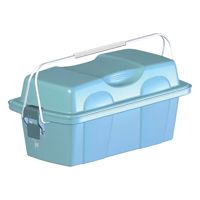 Конструкция | Укладка представляет собой корпус с парой симметрично расположенных ручек и крышкой. Для фиксации крышки на корпусе предусмотрены замки. При необходимости на замки можно установить пломбу. Для удобства при транспортировке на ручки укладки устанавливается накладка-ручкодержатель. |
