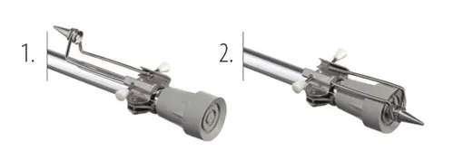 - Крепится к нижней части трости или костыля с помощью 2-х болтов.